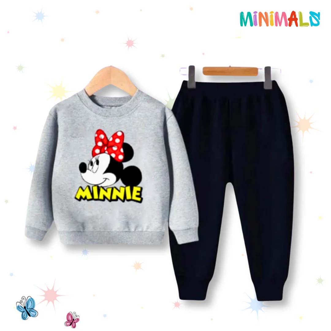Let your little one showcase their love for Disney with the Minnie Mouse Printed Sweatshirt Set in Grey. This cozy set features an adorable Minnie Mouse design, perfect for casual outings or playtime.